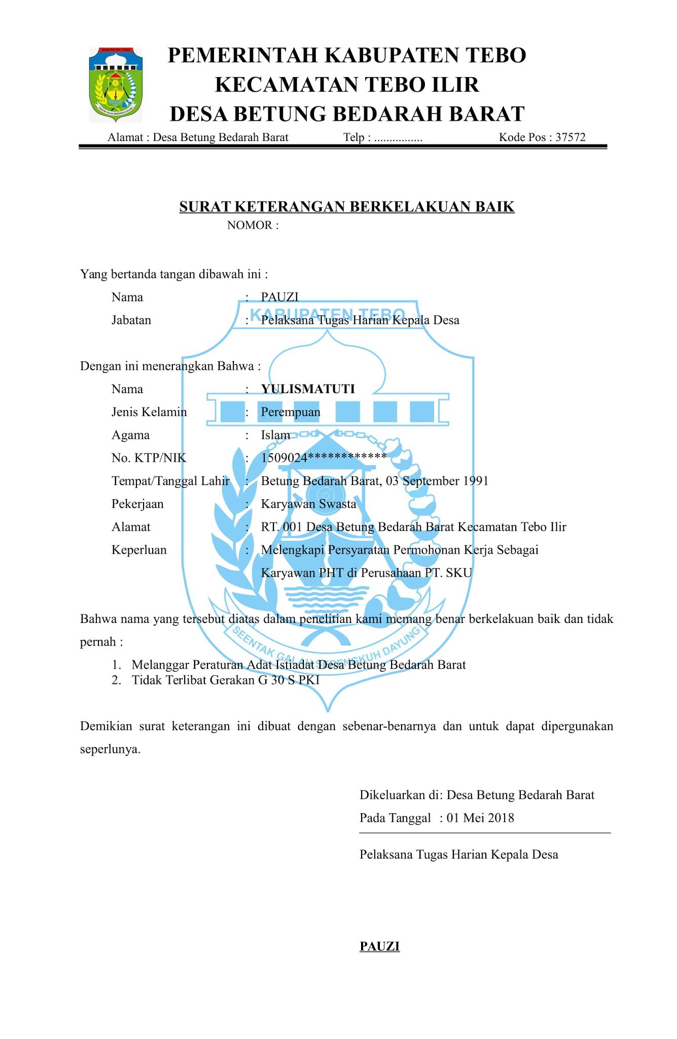 CONTOH SURAT KETERANGAN BERKELAKUAN BAIK DARI KEPALA DESA ... from 2.bp.blogspot.com Contoh surat balasan penelitian informasi seputar dunia. Dijadikan maklum dan agar surat keterangan ini dapat dipergunakan sebagaimana. Oleh karena itu, bagi anda yang belum mempunyai surat ini untuk segera bisa mengurusnya ke pihak yang berwenang. Ini wajib dimana bisa anda buat di rt anda jika tidak ada ataupun hilang misalnya anda bisa menggantinya dnegan surat laporan kematian dari kepolisian. Datangi kantor kelurahan tempat tinggal pihak yang mengajukan. Perjalanan dinas, kendaraan, alat berat. Ada orang ingin membuat surat kematian istrinya, padahal istrinya masih hidup, eh ketemu ketemu pas ada gugatan dari istri yang dimatikan tersebut bahwa suami nya kawin lagi hahahhahaha, sampai ujungnya. Nah kali ini kami akan berbagi mengenai contoh surat jalan pengiriman barang, kendaraan, barang keluar, tugas, alat berat, dinas, desa.